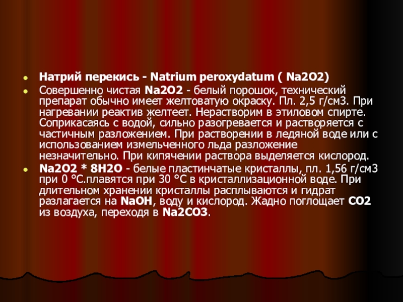 Слайд 11Натрий перекись - Natrium peroxydatum ( Na2O2)
