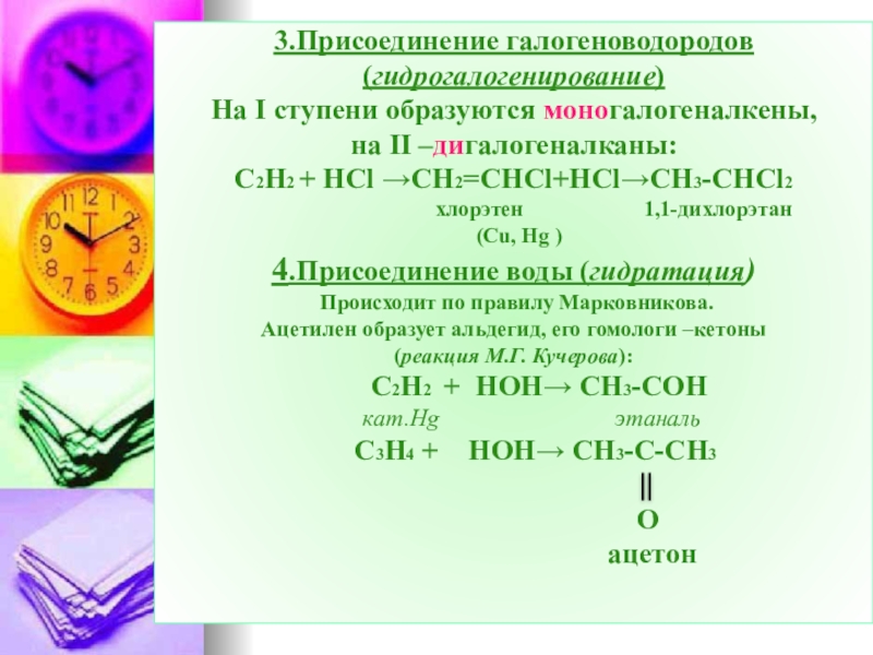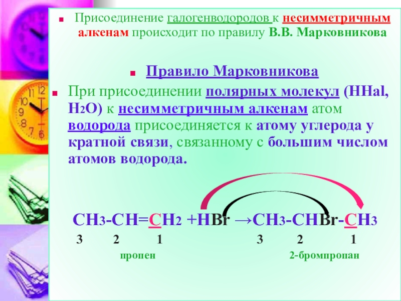 Слайд 463.Присоединение галогеноводородов (гидрогалогенирование)