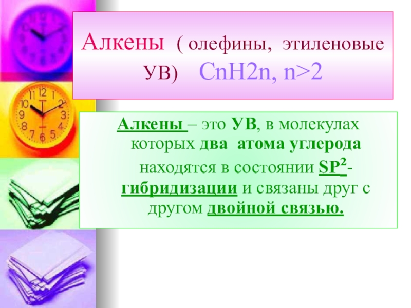 Слайд 4Алкены ( олефины, этиленовые УВ) CnH2n, n>2