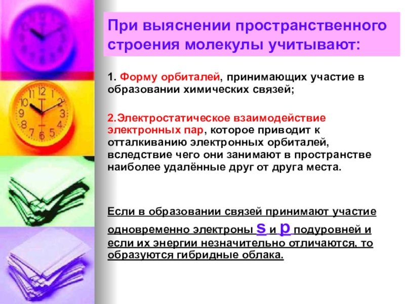 Слайд 8При выяснении пространственного строения молекулы учитывают: