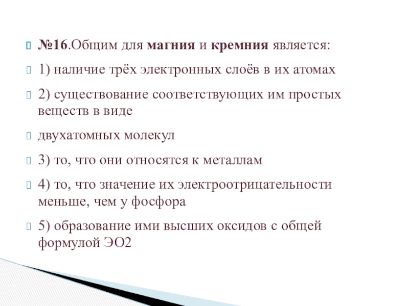 Слайд 3№16.Общим для магния и кремния является: