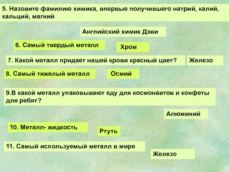 9.В какой металл упаковывают еду для космонавтов и конфеты для ребят?