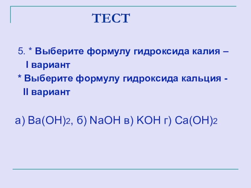 6. * Выберите формулы растворимого в воде основания – I вариант