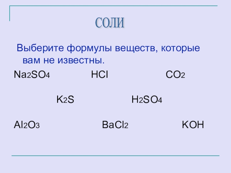 2. Выберите из списка веществ формулы: только кислот (I вариант), формулы только оснований (II вариант):