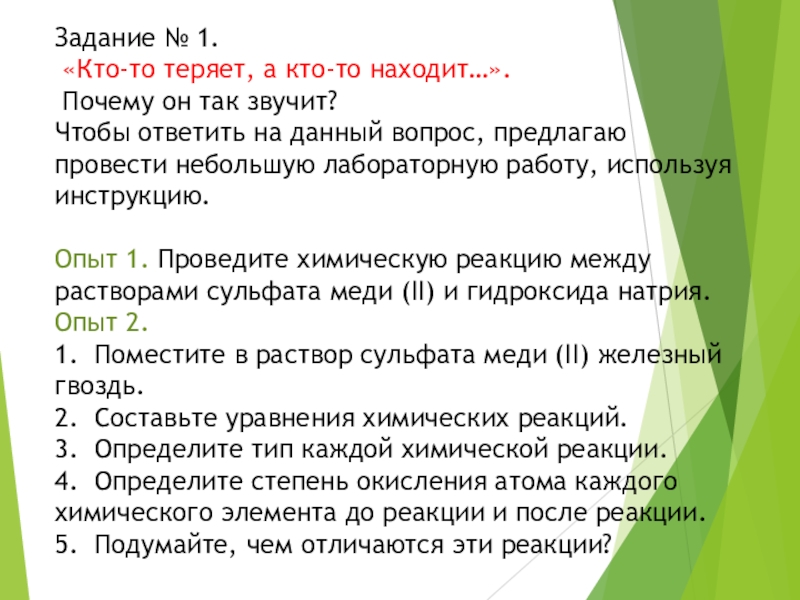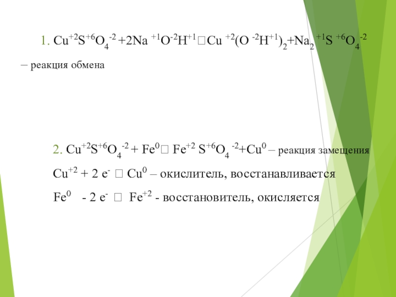 2. Cu+2S+6O4-2 + Fe0 Fe+2 S+6O4 -2+Сu0 – реакция замещения