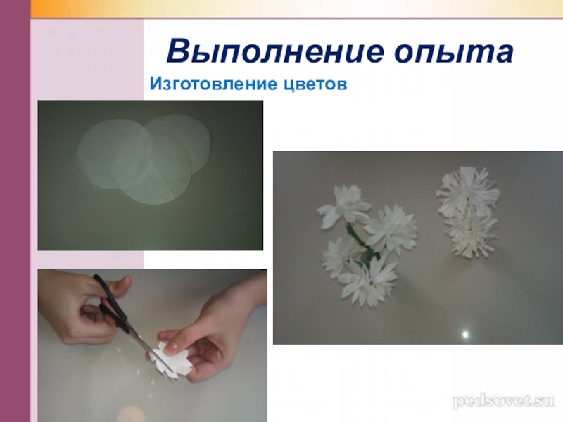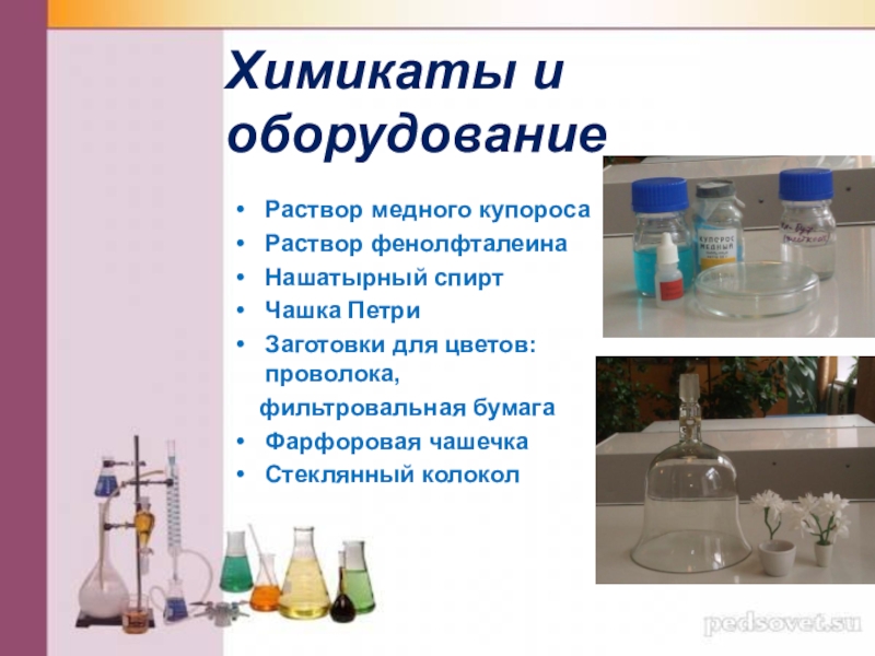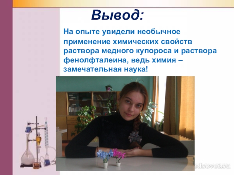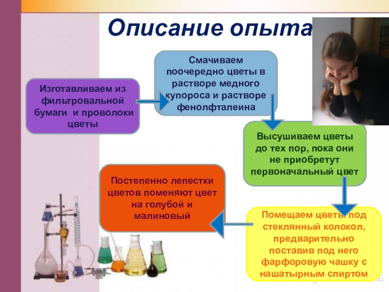Смачиваем поочередно цветы в растворе медного купороса и растворе фенолфталеина