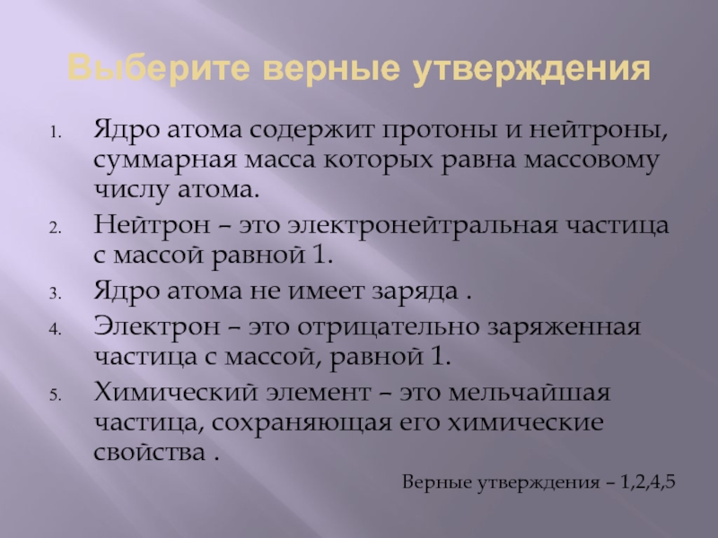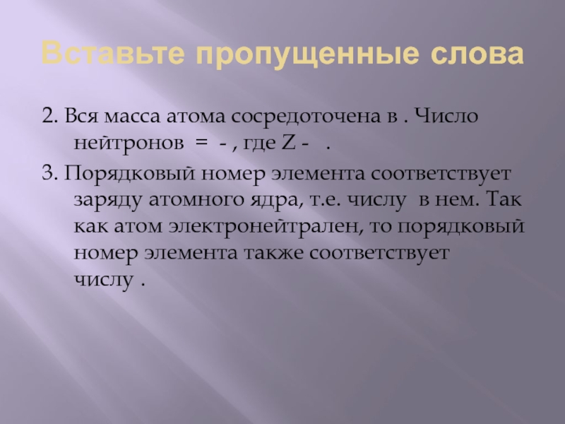2. Вся масса атома сосредоточена в . Число нейтронов
