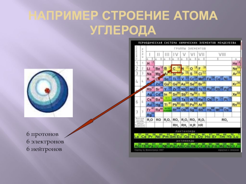 Слайд 19НАПРИМЕР СТРОЕНИЕ АТОМА УГЛЕРОДА