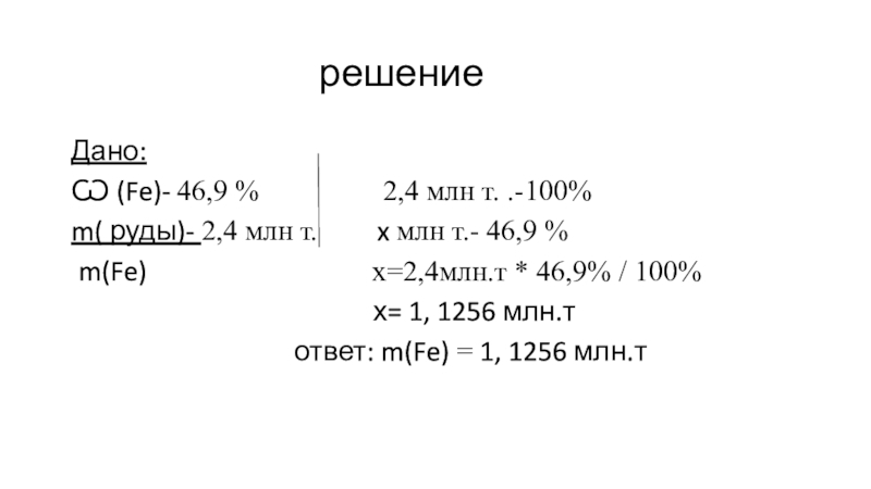 m(Fe) x=2,4млн.т * 46,9% / 100%