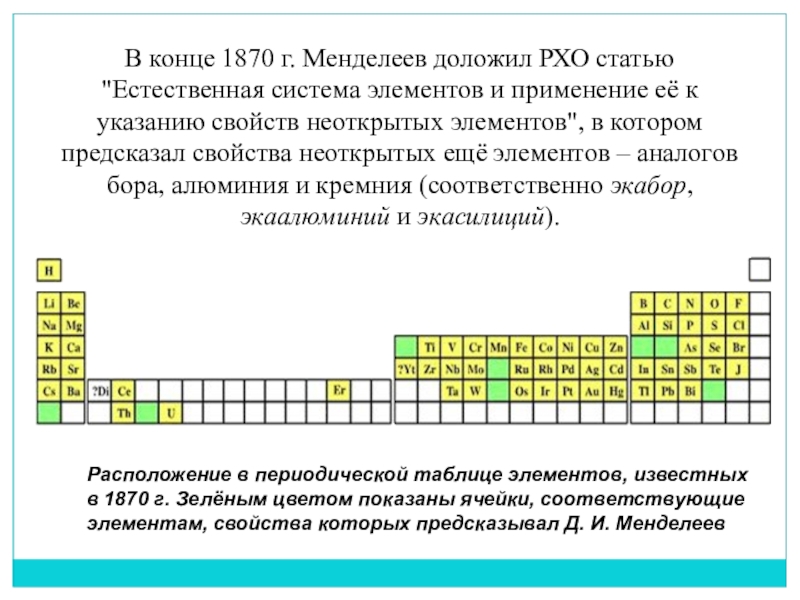 В том же 1869 г. вышло и первое издание учебника "Основы химии", в котором была приведена периодическая таблица Менделеева.
