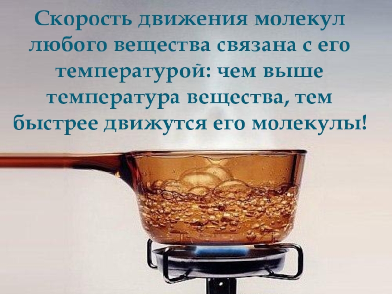 Скорость движения молекул любого вещества связана с его температурой: чем выше температура вещества, тем быстрее движутся его