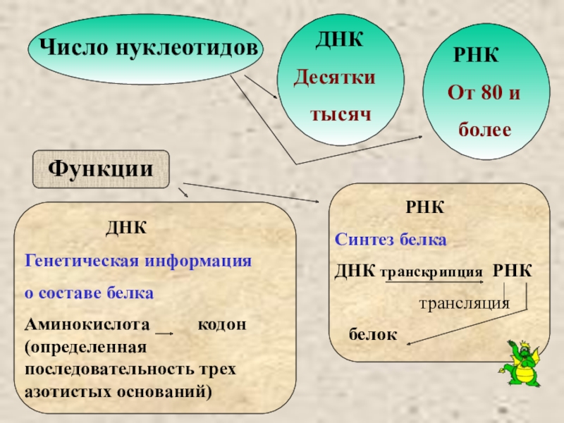 Число нуклеотидов   ДНК Десятки   тысяч       РНК От