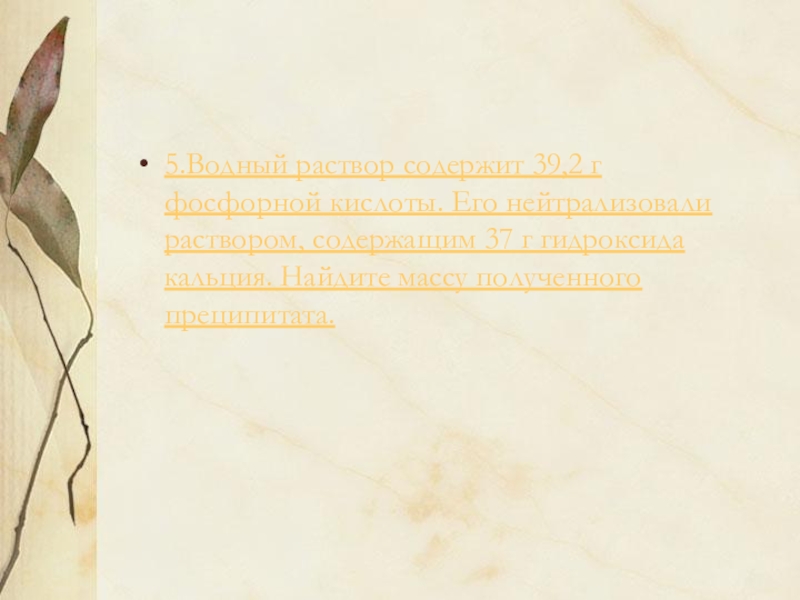 Слайд 175.Водный раствор содержит 39,2 г фосфорной кислоты. Его нейтрализовали раствором, содержащим