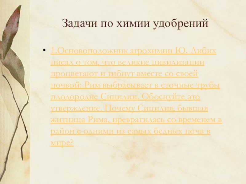1.Основоположник агрохимии Ю. Либих писал о том, что