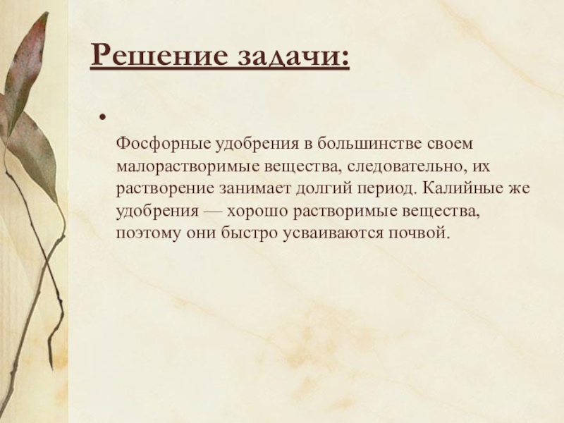 Фосфорные удобрения в большинстве своем малорастворимые вещества, следовательно, их растворение