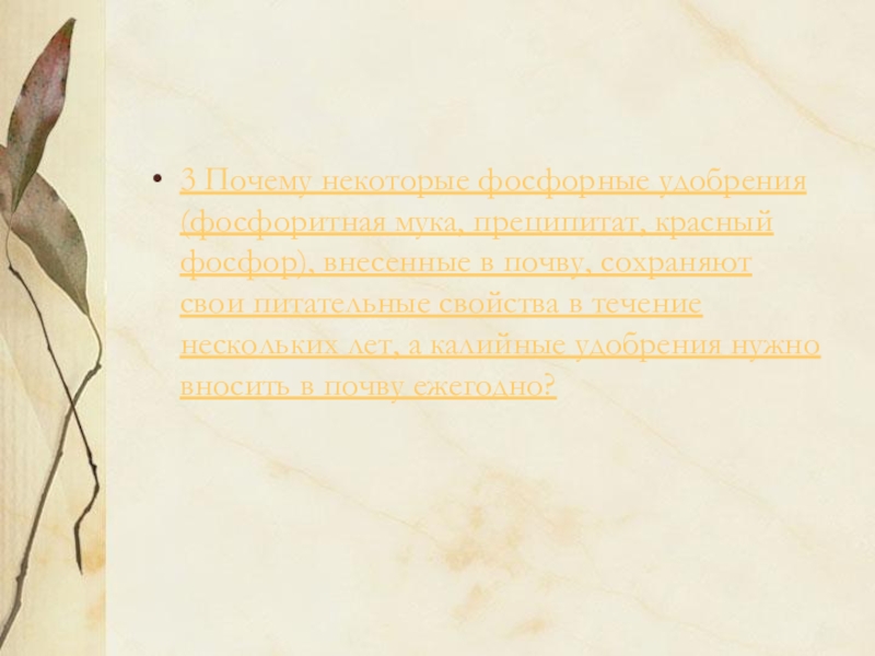 Слайд 123 Почему некоторые фосфорные удобрения (фосфоритная мука, преципитат, красный фосфор), внесенные