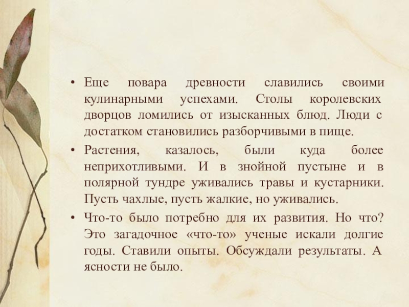 Что-то было потребно для их развития. Но что? Это загадочное «что-то» ученые искали долгие годы. Ставили опыты. Обсуждали результаты. А ясности не было.