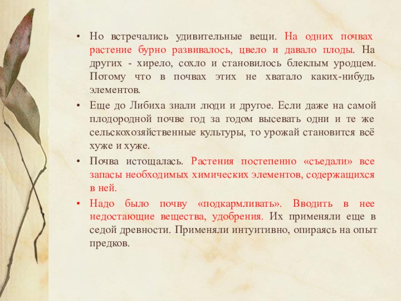 Слайд 5Но встречались удивительные вещи. На одних почвах растение бурно развивалось, цвело
