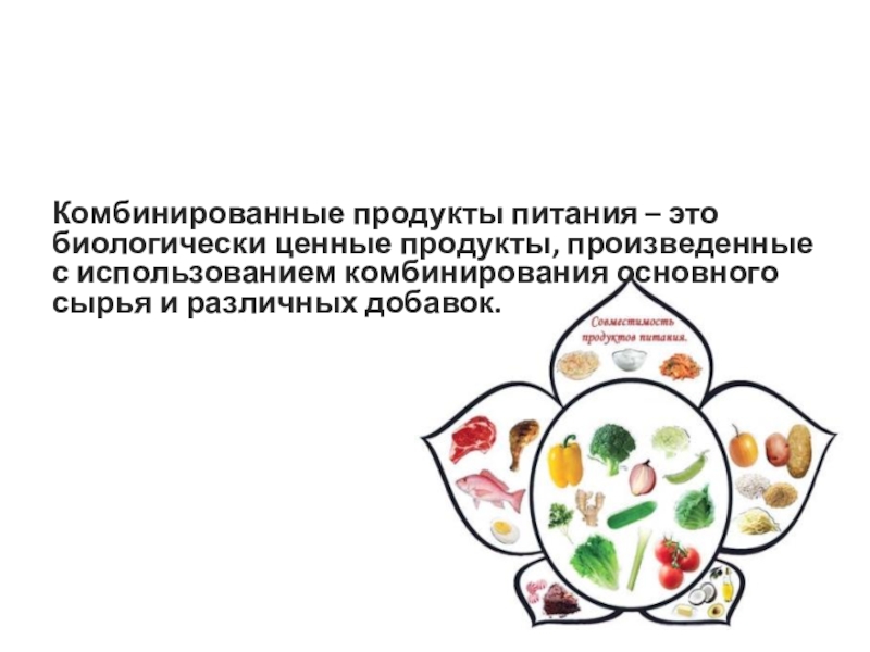 Слайд 13Комбинированные продукты питания – это биологически ценные продукты, произведенные с использованием