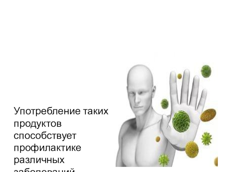 Слайд 6Употребление таких продуктов способствует профилактике различных заболеваний, укрепляет иммунитет, улучшает самочувствие