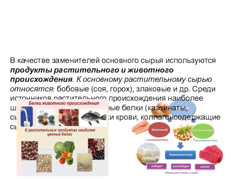 Слайд 15В качестве заменителей основного сырья используются продукты растительного и животного происхождения.