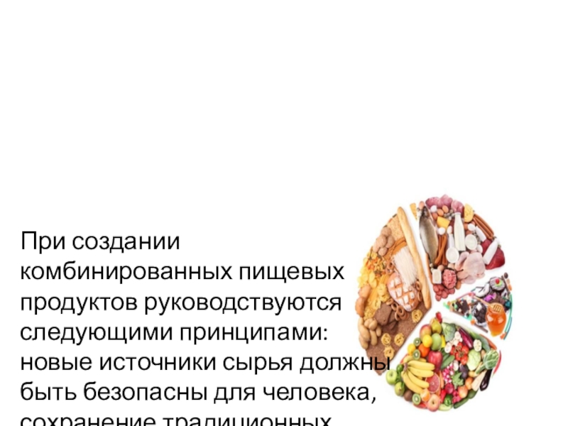 Слайд 14При создании комбинированных пищевых продуктов руководствуются следующими принципами: новые источники сырья