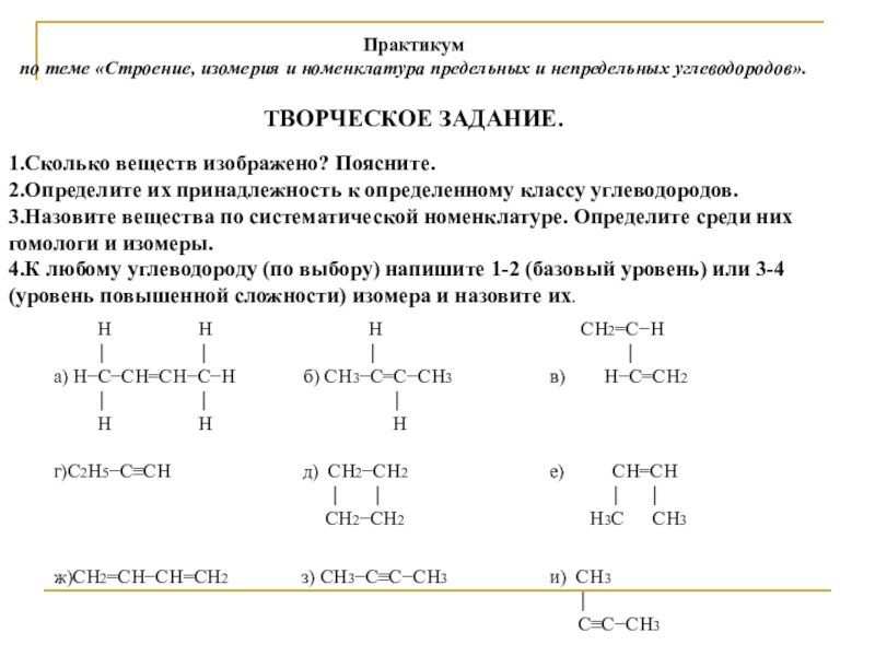 ж)СН2=СН−СН=СН2 з) СН3−С≡С−СН3 и) СН3