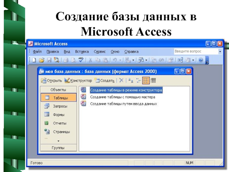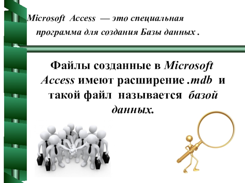 Слайд 3Microsoft Access — это специальная программа для создания Базы данных .
