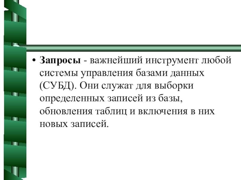 Запросы - важнейший инструмент любой системы управления базами данных (СУБД). Они