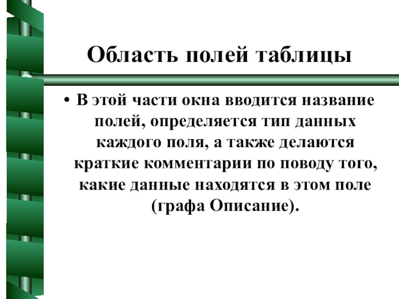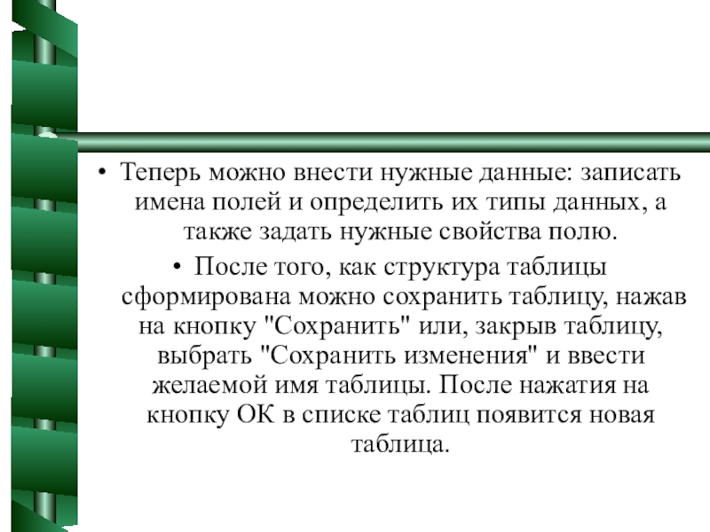 Слайд 23Теперь можно внести нужные данные: записать имена полей и определить их