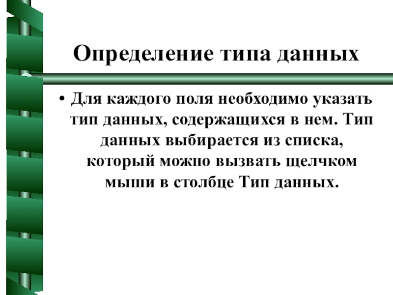 Для каждого поля необходимо указать тип данных, содержащихся в