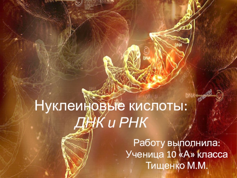 Нуклеиновые кислоты:  ДНК и РНКРаботу выполнила:Ученица 10 «А» классаТищенко М.М.