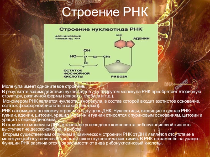 Презентация, доклад по химии 10 класс ДНК и РНК