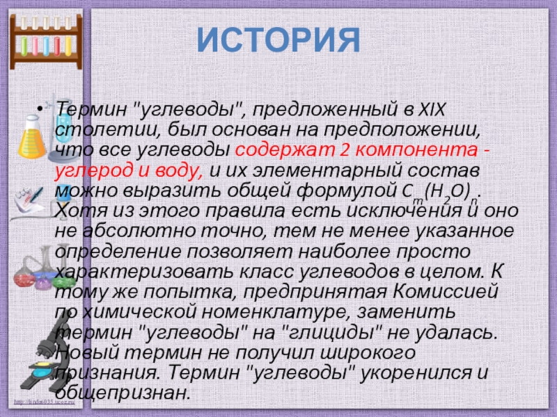Термин "углеводы", предложенный в XIX столетии, был основан на предположении, что