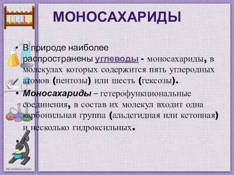 В природе наиболее распространены углеводы - моносахариды, в молекулах которых содержится пять углеродных