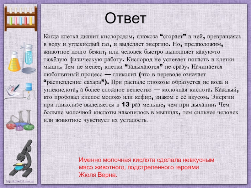 Именно молочная кислота сделала невкусным мясо животного, подстреленного героями Жюля Верна.