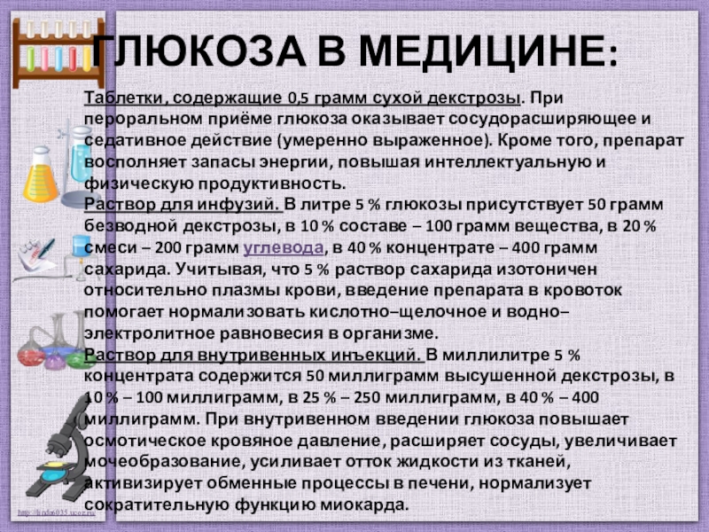 Слайд 31ГЛЮКОЗА В МЕДИЦИНЕ: