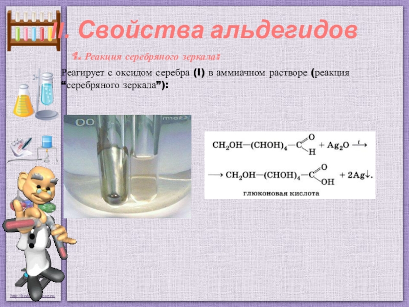 в аммиачном растворе (реакция “серебряного зеркала”):