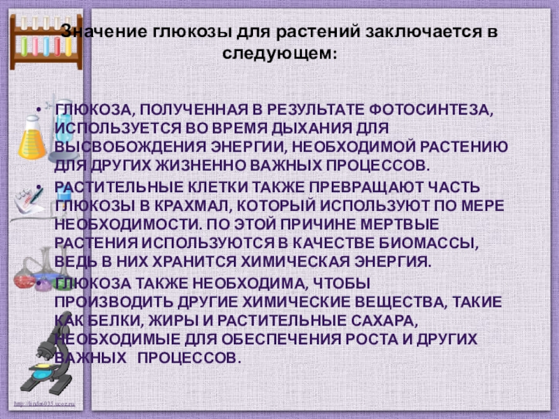 Слайд 10Значение глюкозы для растений заключается в следующем: