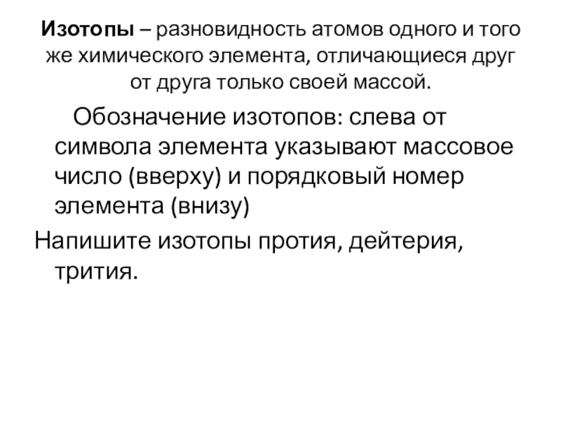 Слайд 6Изотопы – разновидность атомов одного и того же химического элемента, отличающиеся друг