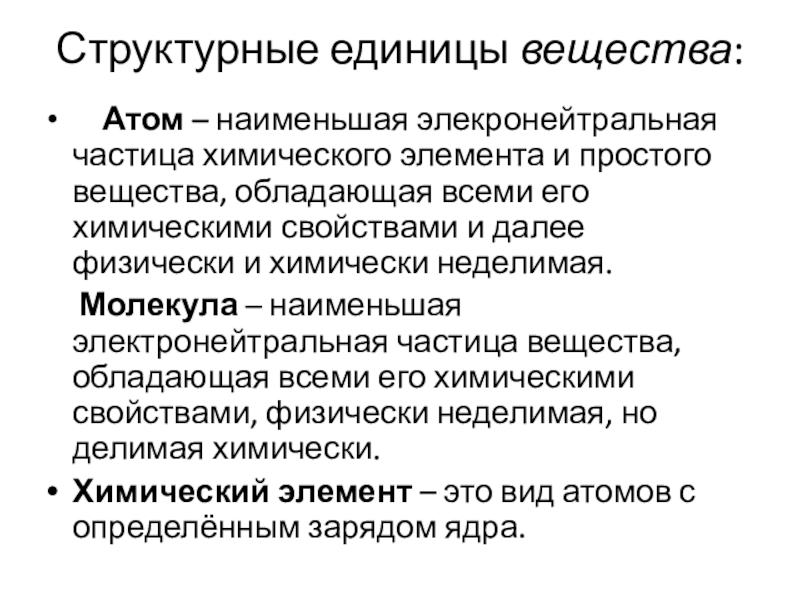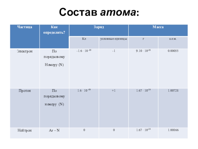 Атом – наименьшая элекронейтральная частица химического элемента и простого вещества, обладающая