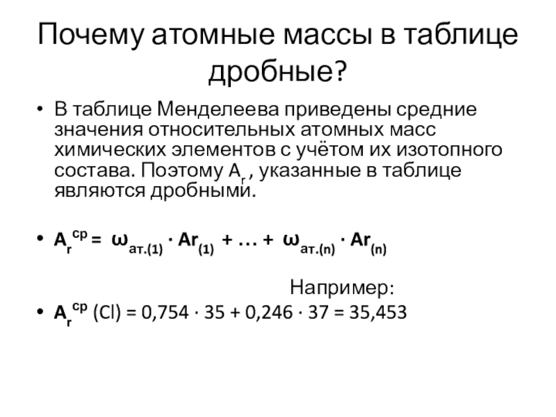 относительных атомных масс химических элементов с учётом их изотопного состава. Поэтому Ar , указанные в таблице являются дробными.