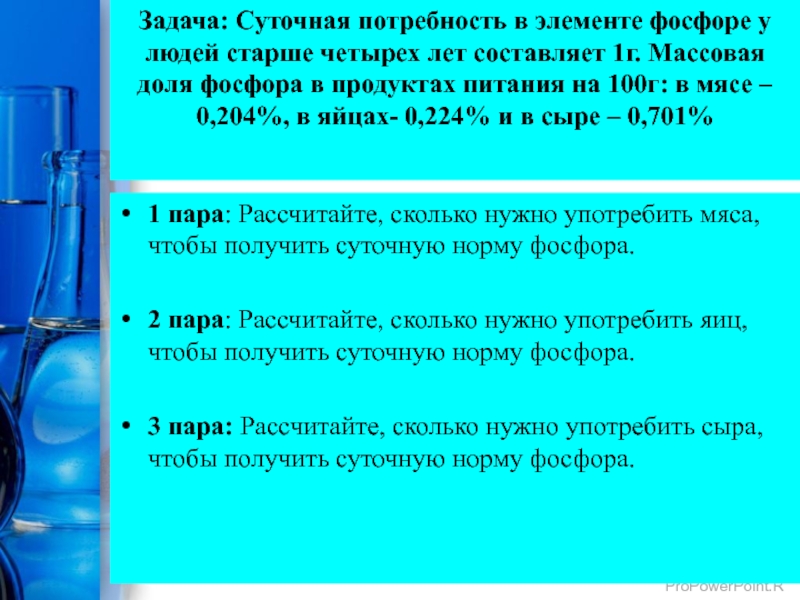 1 пара: Рассчитайте, сколько нужно употребить мяса, чтобы получить суточную норму фосфора.