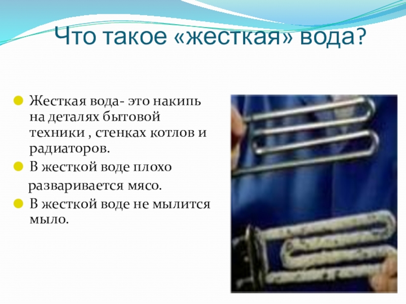 Природная вода, содержащая в растворе большое количество солей кальция и магния называется жесткой водой.
