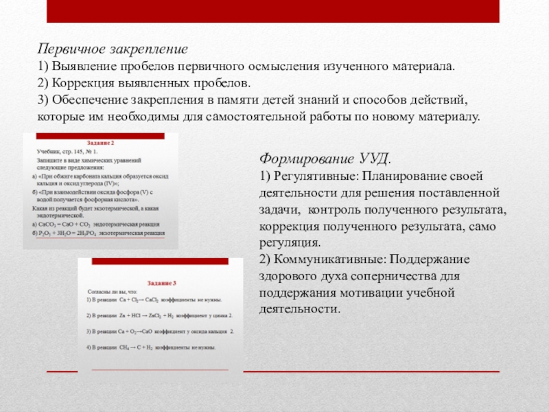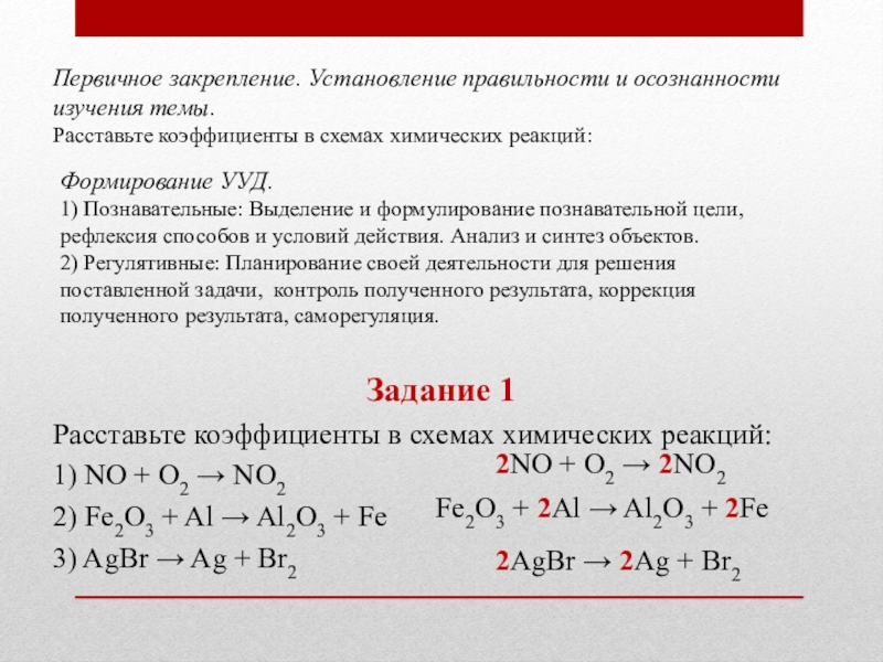 Первичное закрепление. Установление правильности и осознанности изучения темы.