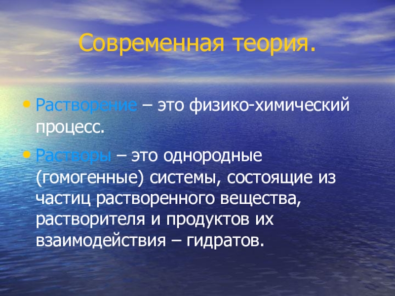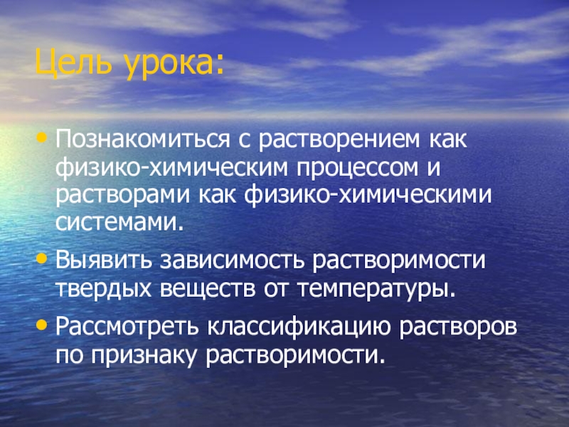 Насыщенный – такой раствор, в котором содержание растворенного вещества отвечает установлению при данной температуре равновесия между этим веществом и раствором.