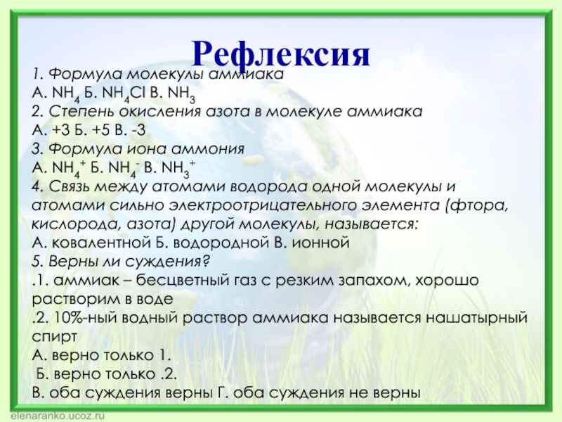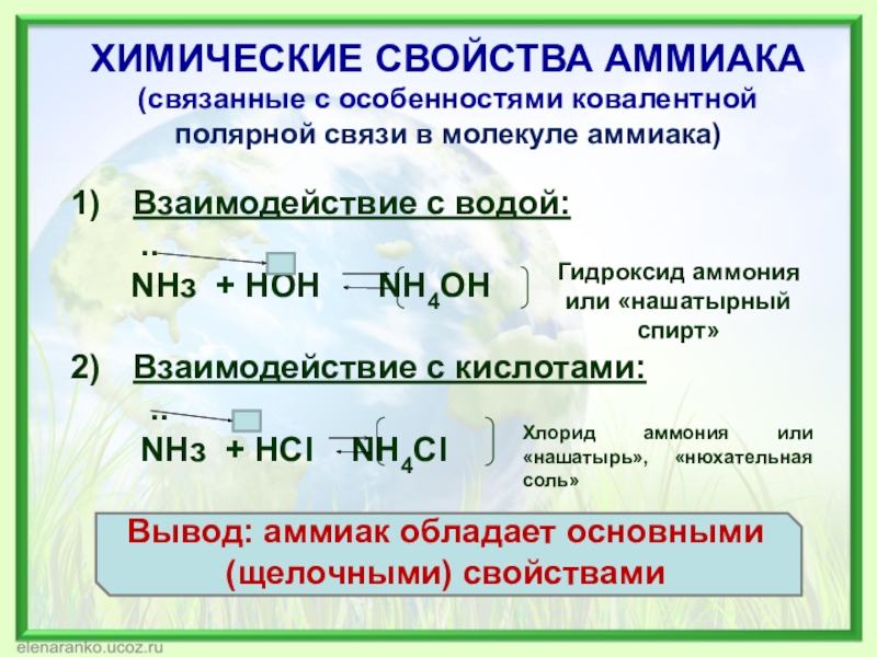 Вывод: аммиак обладает основными (щелочными) свойствами