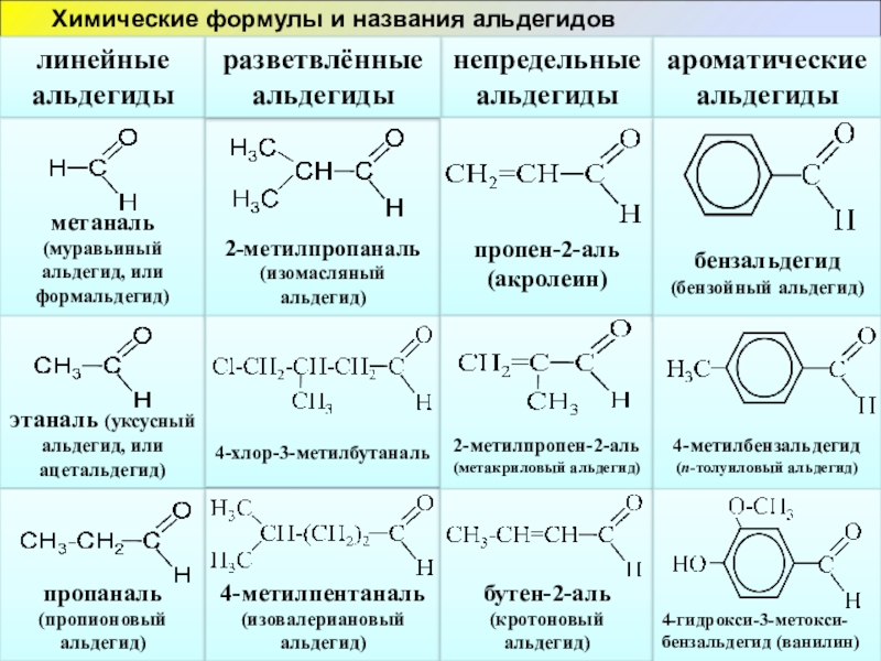 Наряду с систематической номенклатурой используют и тривиальные названия широко применяемых альдегидов. Эти названия, как правило, образованы от названий карбоновых кислот, соответствующих альдегидам.