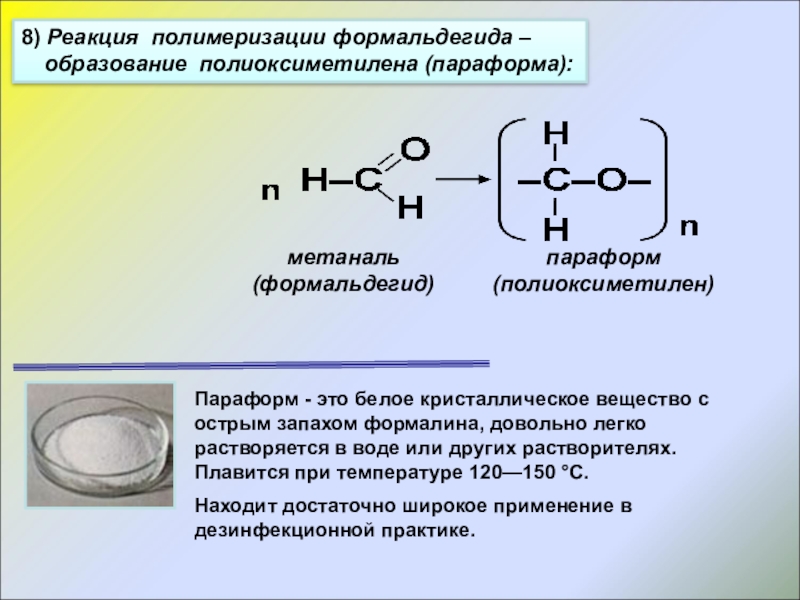 7) Качественная реакция на альдегиды с фуксинсернистой кислотой