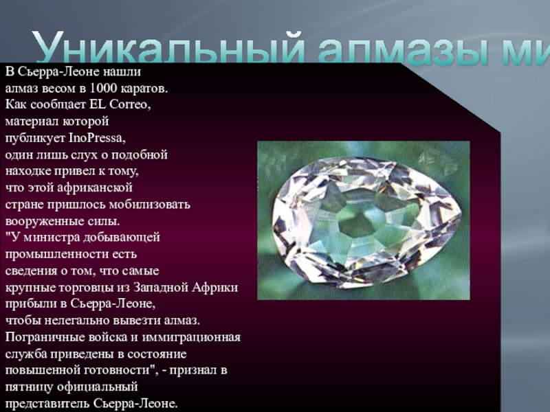 Уникальный алмазы мира.